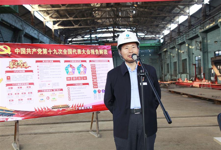 12月6日下午,廣西建工集團黨委委員、副總經(jīng)理侯立林到冶建公司壓力容器制造廠鉚焊車間進行學習貫徹黨的十九大精神進工地、進車間宣講報告。