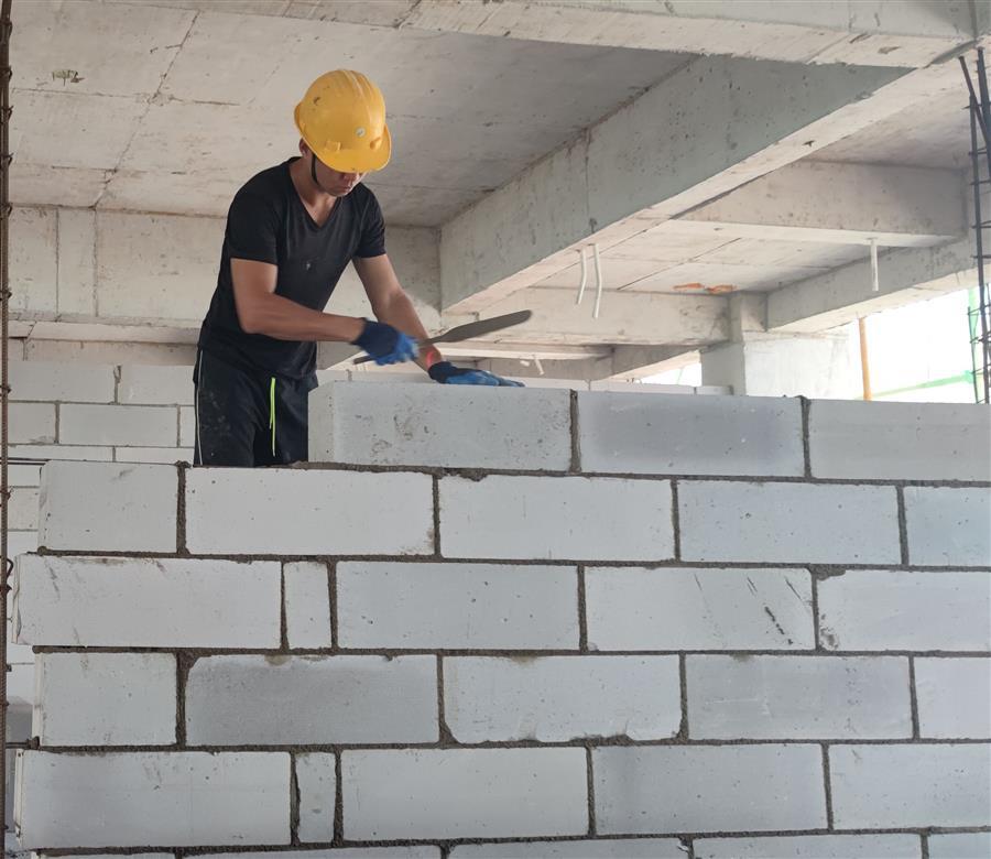 工人正在砌筑