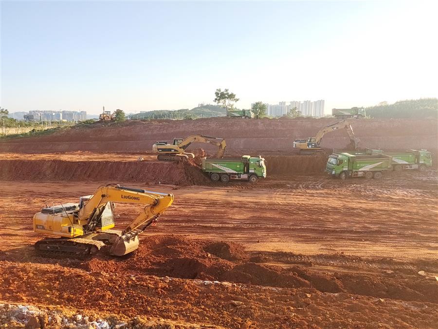 在第七分公司承建的柳江區(qū)新興工業(yè)園柳石路東片區(qū)基礎設施建設項目-土方平整工程(三期)施工現場,項目管理人員和工人用辛勤的汗水為城市建設默默奉獻。