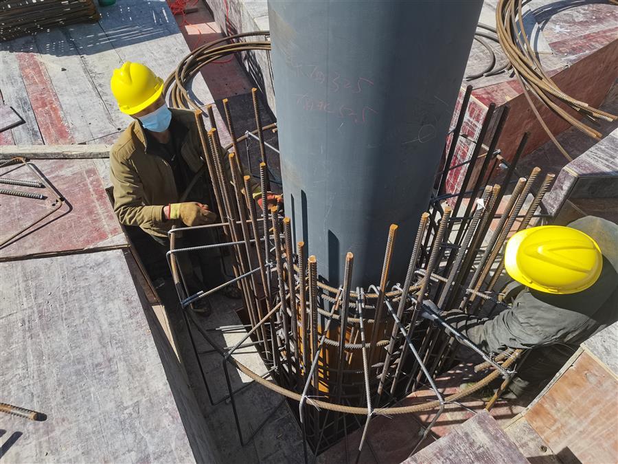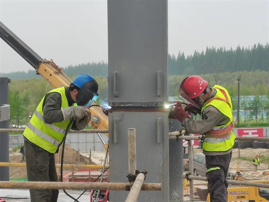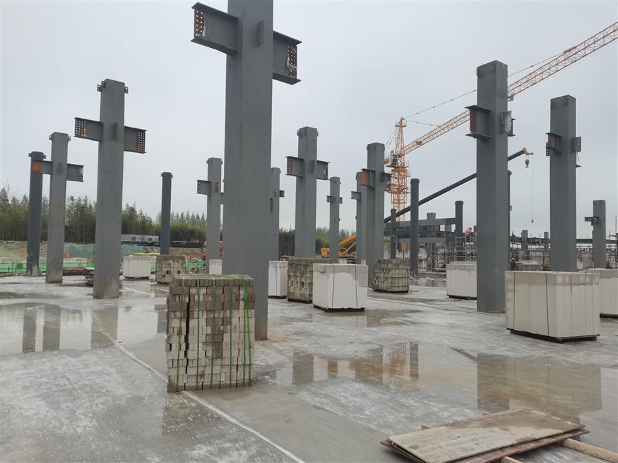 項(xiàng)目所在地受疫情影響較大,為統(tǒng)籌抓好項(xiàng)目疫情防控、安全生產(chǎn)、施工進(jìn)度等工作,項(xiàng)目部嚴(yán)格落實(shí)疫情常態(tài)化防控措施,做好日常測(cè)體溫、消毒等工作,并對(duì)項(xiàng)目進(jìn)行統(tǒng)籌規(guī)劃,根據(jù)“白+黑”“晴+雨”的天氣情況,合理安排相應(yīng)的施工任務(wù),同時(shí)加強(qiáng)吊裝機(jī)械設(shè)備的排班策劃力度,合理安排穿插作業(yè),確保工程進(jìn)度如期完成。經(jīng)過兩個(gè)月的施工,目前項(xiàng)目正在進(jìn)行第一層鋼梁安裝焊接和砌體結(jié)構(gòu)砌筑、二層鋼柱吊裝安裝等工序。