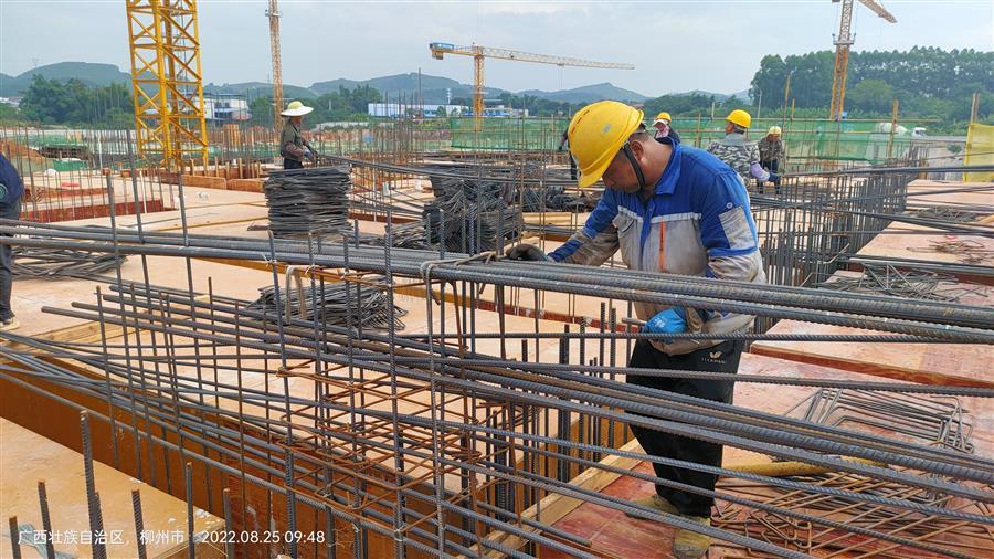 為了確保按時(shí)間節(jié)點(diǎn)完成工作量,項(xiàng)目部想方設(shè)法克服各種困難,在做好疫情防控及防暑降溫保障措施工作的同時(shí),認(rèn)真抓好施工現(xiàn)場(chǎng)的安全和質(zhì)量管理工作。當(dāng)前,項(xiàng)目每天有200多人的鋼筋班組、木工班組、外架班組、滿堂架班組和混凝土班組在現(xiàn)場(chǎng)有序進(jìn)行安裝模板、搭設(shè)支架、綁扎鋼筋等工作。