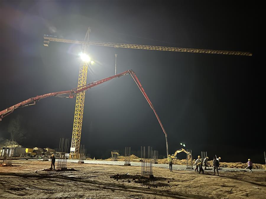 該項目于今年10月1日開工建設(shè),項目部圍繞工程的整體規(guī)劃和具體要求,全面推行集團公司“3+1”項目管理機制,精心組織,堅持“高標(biāo)準(zhǔn)、嚴要求,開好頭”的工作態(tài)度,嚴抓生產(chǎn)、安全、質(zhì)量、防疫管理等工作。當(dāng)前,每天有200多人進場施工,他們分散在不同作業(yè)面熟練地綁扎鋼筋、安裝模板、搭設(shè)架子;數(shù)臺挖掘機開挖基槽、轉(zhuǎn)運土方,把狀態(tài)、精力、干勁集中到項目建設(shè)上來,現(xiàn)場一派熱火朝天的景象。截止目前,實現(xiàn)產(chǎn)值1800萬元,完成總工程量的12%。