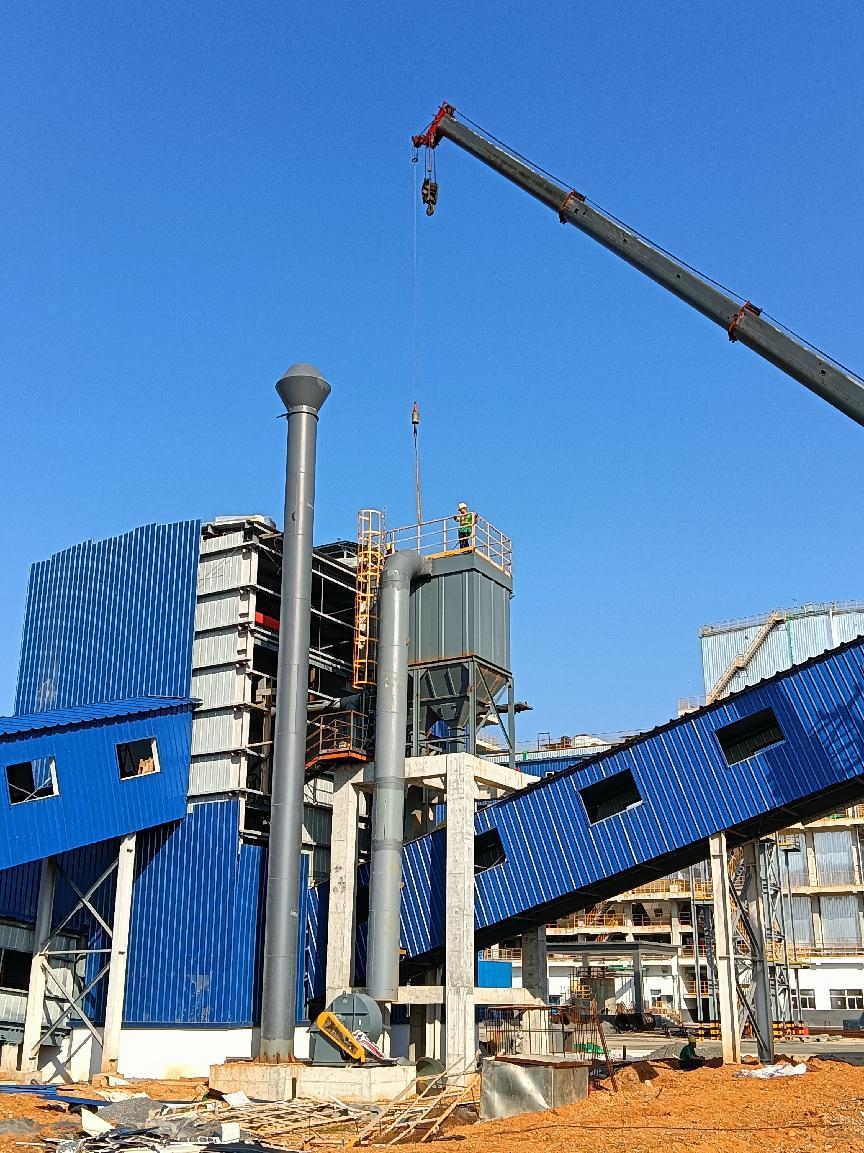 柳鋼環(huán)保公司鋼渣廠中間料場棚化項目之主體工程,工人正在加班開展工作。