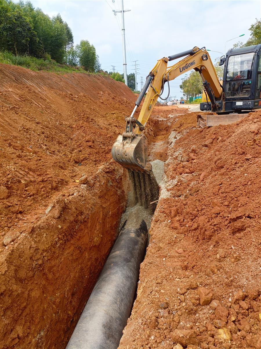 柳州市古靈大道(濱江路至北進路)地下綜合管廊-給水工程項目建設現(xiàn)場,施工人員正在全力奮戰(zhàn),為了能夠爭取早日完成既定目標,項目部一切以生產(chǎn)為工作重心,不等不靠、主動出擊,在重質(zhì)量、保安全的同時,扎實完成好各項施工任務?,F(xiàn)階段項目正在進行C0+900—C1+550標段施工,針對該標段施工交叉作業(yè)多,工作面、點多,作業(yè)區(qū)域覆蓋高壓線多,項目部科學統(tǒng)籌施工和安全,全力推進建設進度。