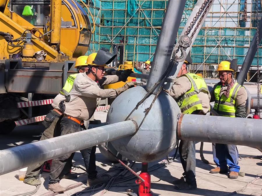 項(xiàng)目總建筑面積4.46萬平方米,建設(shè)內(nèi)容為文化會(huì)展中心和英德茶文化博物館(含紅茶研發(fā)中心、檢測中心和交易中心)等。目前,項(xiàng)目正在進(jìn)行網(wǎng)架拼裝、加焊、焊接囗打磨、鋼球刷漆等工作,鋼結(jié)構(gòu)施工進(jìn)度為65%。