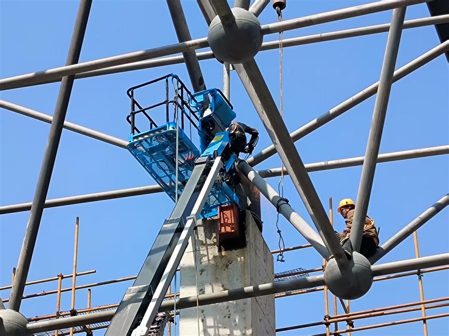 項(xiàng)目部嚴(yán)格落實(shí)好節(jié)后復(fù)工復(fù)產(chǎn)“六個(gè)一”,全面排查網(wǎng)架班組施工安全隱患,對(duì)施工設(shè)備、作業(yè)人員、安全防護(hù)設(shè)施等進(jìn)行檢查和培訓(xùn),確保設(shè)備設(shè)施安全可靠后全面復(fù)工。目前,該項(xiàng)目正在進(jìn)行網(wǎng)架小立柱的安裝和提升架的拆除工作。
