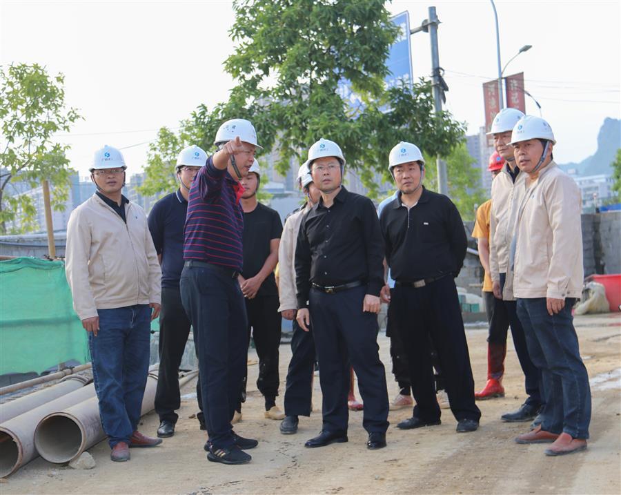10月27日,公司黨委副書記、紀(jì)委書記、工會(huì)主席賴海標(biāo)到桂金分公司承建的河池?澳門國(guó)際城四期項(xiàng)目調(diào)研指導(dǎo)清收回款工作