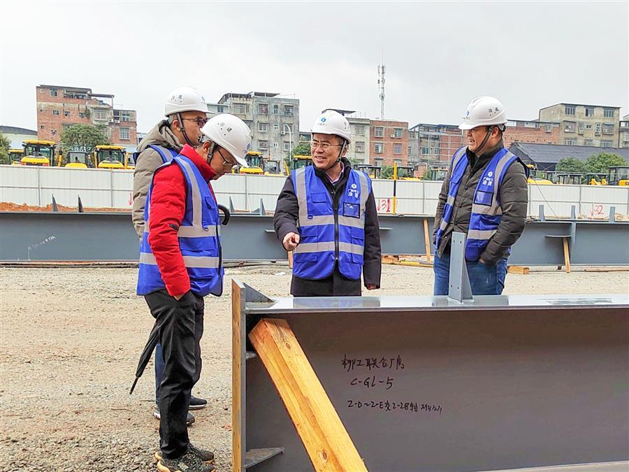 廖立波深入項(xiàng)目施工現(xiàn)場,詳細(xì)了解項(xiàng)目施工進(jìn)度、質(zhì)量安全管理、鋼結(jié)構(gòu)安裝、機(jī)械材料設(shè)備等情況。廖立波要求,項(xiàng)目部要統(tǒng)籌做好施工計(jì)劃,根據(jù)整體工期安排,合理分解階段性目標(biāo),精準(zhǔn)設(shè)計(jì)施工方案,掛圖作戰(zhàn),提高整體施工效率;要毫不松懈抓好安全生產(chǎn),健全安全管理體系,常態(tài)化開展安全警示教育,提高安全管理水平。廖立波強(qiáng)調(diào),要全面加強(qiáng)質(zhì)量管理,認(rèn)真做好創(chuàng)優(yōu)前期工作,落實(shí)質(zhì)量管理責(zé)任,將質(zhì)量管控貫穿項(xiàng)目建設(shè)全過程;要堅(jiān)持樣板引路,嚴(yán)格落實(shí)標(biāo)準(zhǔn)規(guī)范,抓好基礎(chǔ)技術(shù)管理、原材料質(zhì)量管控、項(xiàng)目檢驗(yàn)和驗(yàn)收,探索創(chuàng)新施工工藝,提高施工水平,確保一次成優(yōu),保障工程質(zhì)量整體過硬。