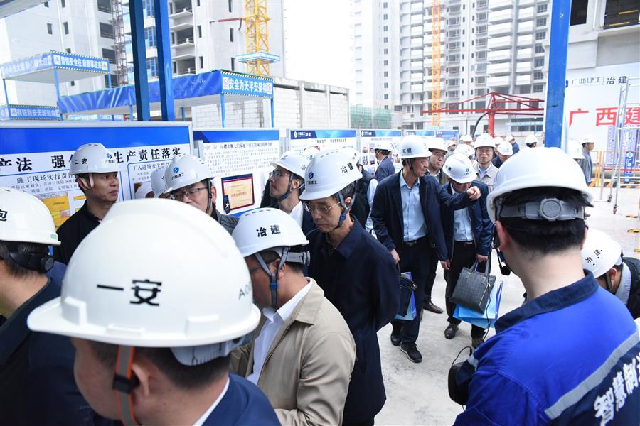 春雨潤邕,綠意蔥蘢。4月10日,集團公司2023年第二季度安全生產(chǎn)工作會議暨質(zhì)量安全標(biāo)準(zhǔn)化現(xiàn)場觀摩會,在冶建公司桂鴻分公司施工的北投時代(二期)項目舉行。集團公司總經(jīng)理、黨委副書記、董事羅濤,副總經(jīng)理陳禮松,總經(jīng)理助理、企業(yè)管理部總經(jīng)理、市場經(jīng)營部總經(jīng)理劉新寧,集團公司各子公司負(fù)責(zé)人及相關(guān)人員近300人參加了此次觀摩會。