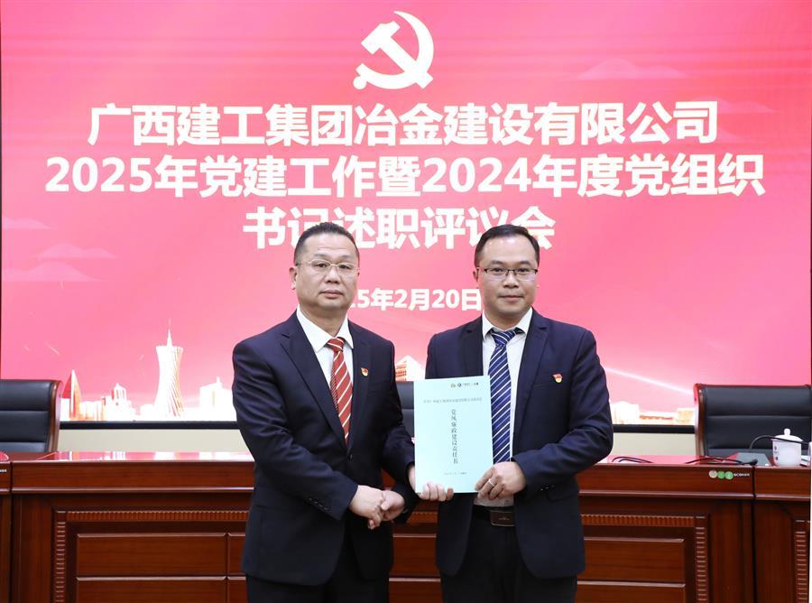 2月20日,冶建公司2025年黨建工作暨2024年度黨組織書記述職評(píng)議會(huì)議在公司1號(hào)樓第二會(huì)議室召開。公司黨委書記、董事長覃振華參加并講話,黨委副書記、總經(jīng)理蒙勝益參加,黨委副書記、紀(jì)委書記、工會(huì)主席賴海標(biāo)主持。