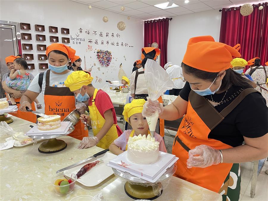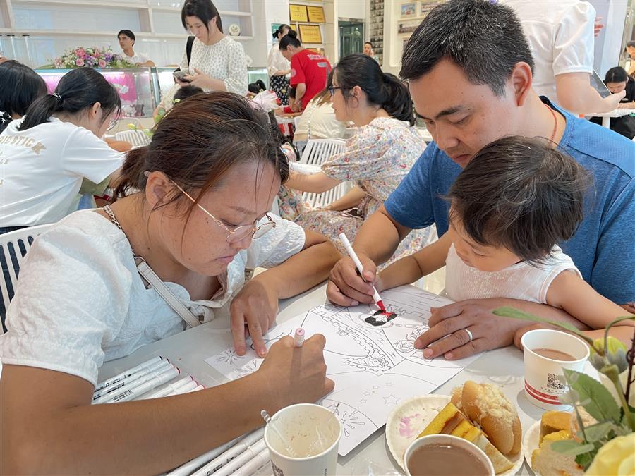 活動(dòng)現(xiàn)場(chǎng),家長(zhǎng)和孩子們聆聽(tīng)了紅色詩(shī)歌朗誦,現(xiàn)場(chǎng)共同繪制了主題畫(huà)作。并在講解員的帶領(lǐng)下參觀了中央工廠,了解了糕點(diǎn)生產(chǎn)過(guò)程。參觀后,大家一起觀看專業(yè)糕點(diǎn)師的現(xiàn)場(chǎng)教學(xué)并體驗(yàn)了蛋糕制作。一個(gè)小時(shí)后,一個(gè)個(gè)造型別致、想象奇特、富有童趣的親子蛋糕新鮮出爐。家長(zhǎng)與小朋友們手捧自己制作的蛋糕拍照,現(xiàn)場(chǎng)氛圍其樂(lè)融融。