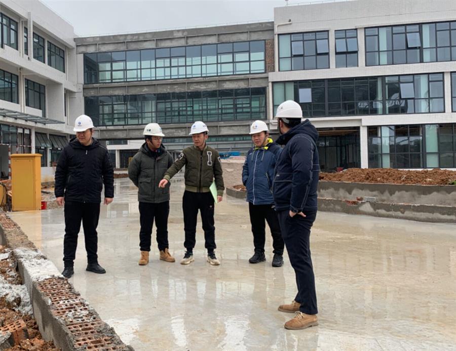 何登培(左一)到項目現場開展工作