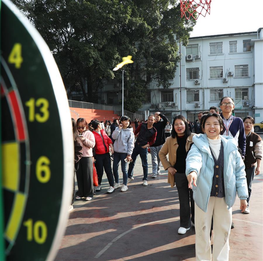活動現(xiàn)場處處歡聲笑語、熱鬧非凡,一派歡樂祥和的景象。在集體項目團隊滾鐵環(huán)接力賽、單腿跑火車接力賽中,參與比賽的員工配合默契、銜接緊密、奮力爭先,場面激烈,觀眾的掌聲、笑聲、喝彩聲此起彼伏。游園活動還設(shè)置擲壺、飛鏢、滾球入桶、定點投籃、盲人擊鼓、套活雞活鴨等8項個人項目,大家有序排隊積極參與,樂在其中,收獲滿滿,為即將到來的蛇年新春增添了滿滿的喜氣。